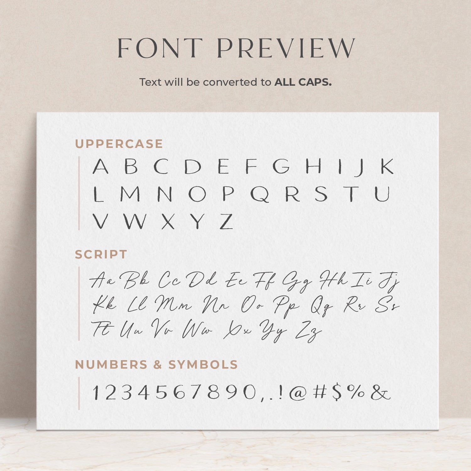 Text will be printed in fonts shown. Family Name will be uppercase.