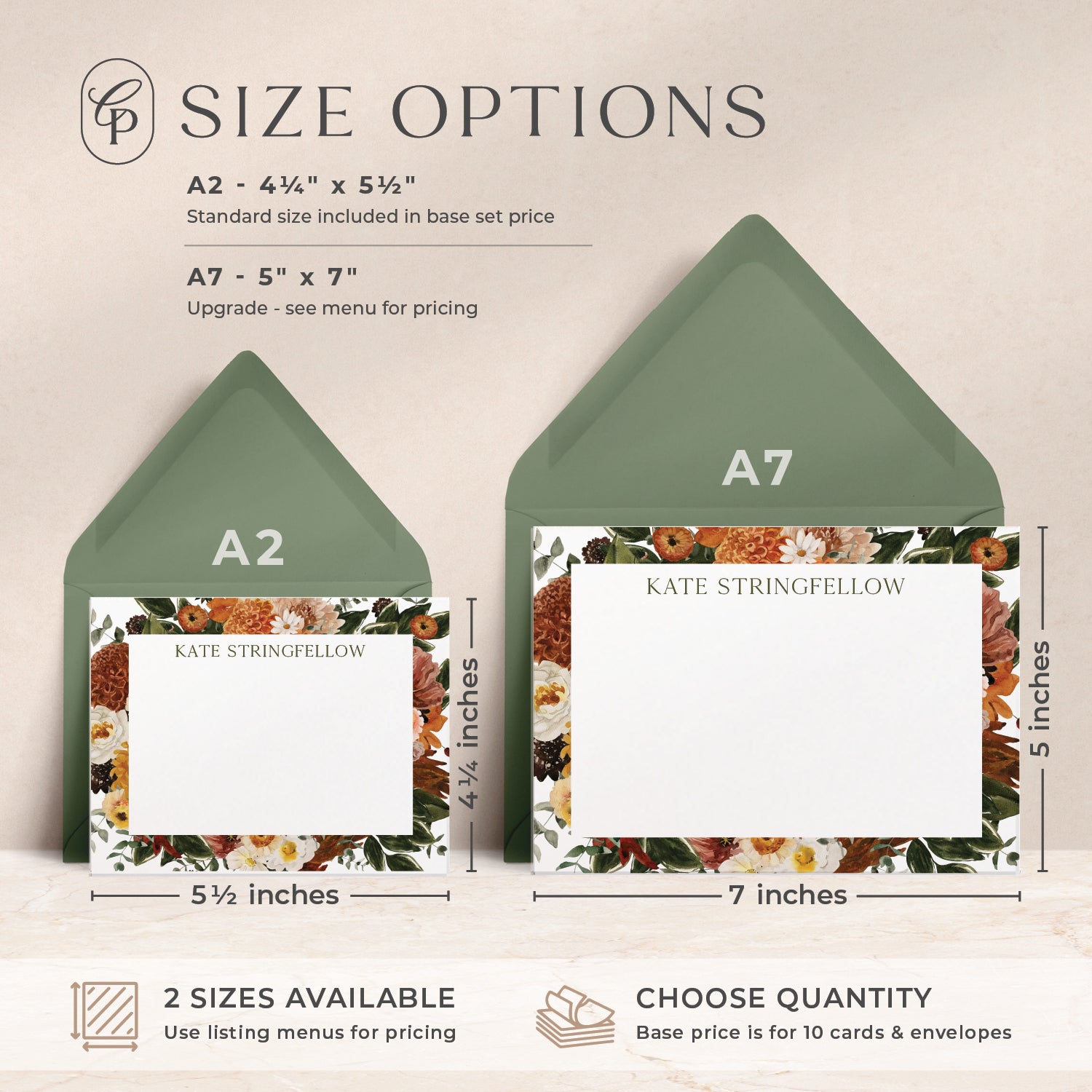 Choose between A2 (5.5 x 4.25 inches) OR A7 (5 x 7 inches) size cards and envelopes